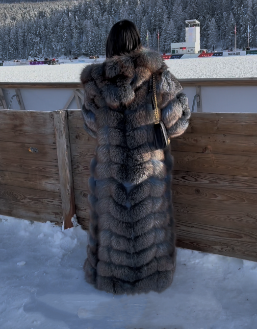 Blue Full Length Fox Fur Coat