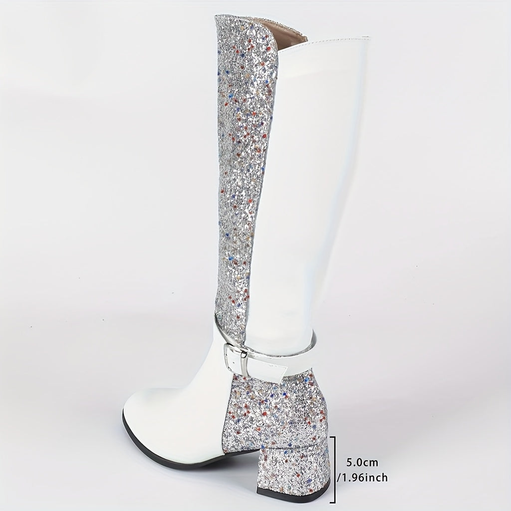 Chunky Heeled Patchwork Over-the-knee Boot
