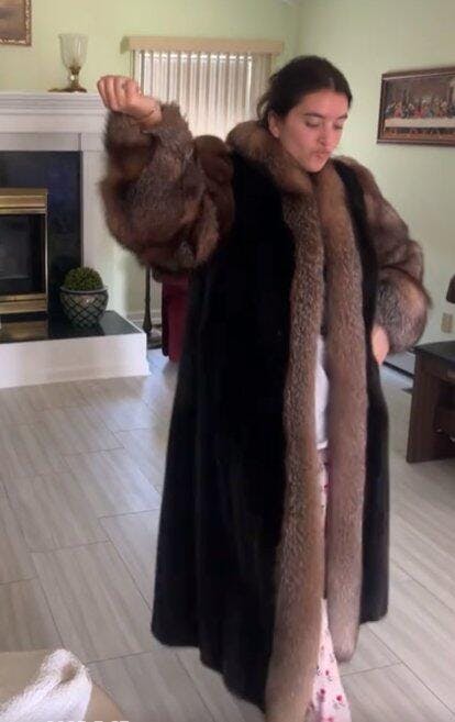 Material: Genuine mink body with full fox fur collar, sleeves, and front trim