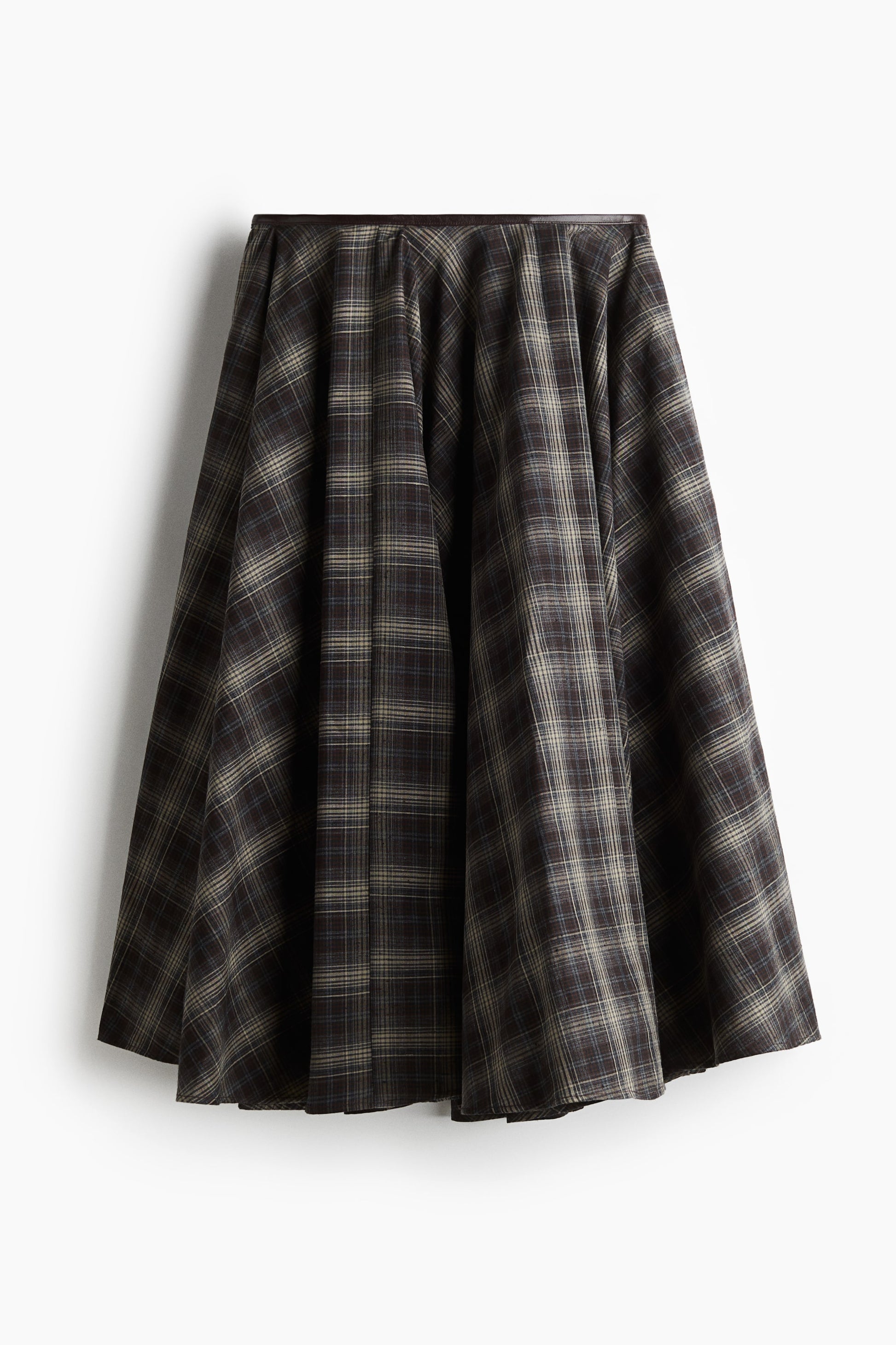 Loose-fit, ankle-length circle skirt in woven cotton. Coated binding at waist, discreet side pockets, and a concealed zipper at one side with hook-and-eye fastener. Unlined.