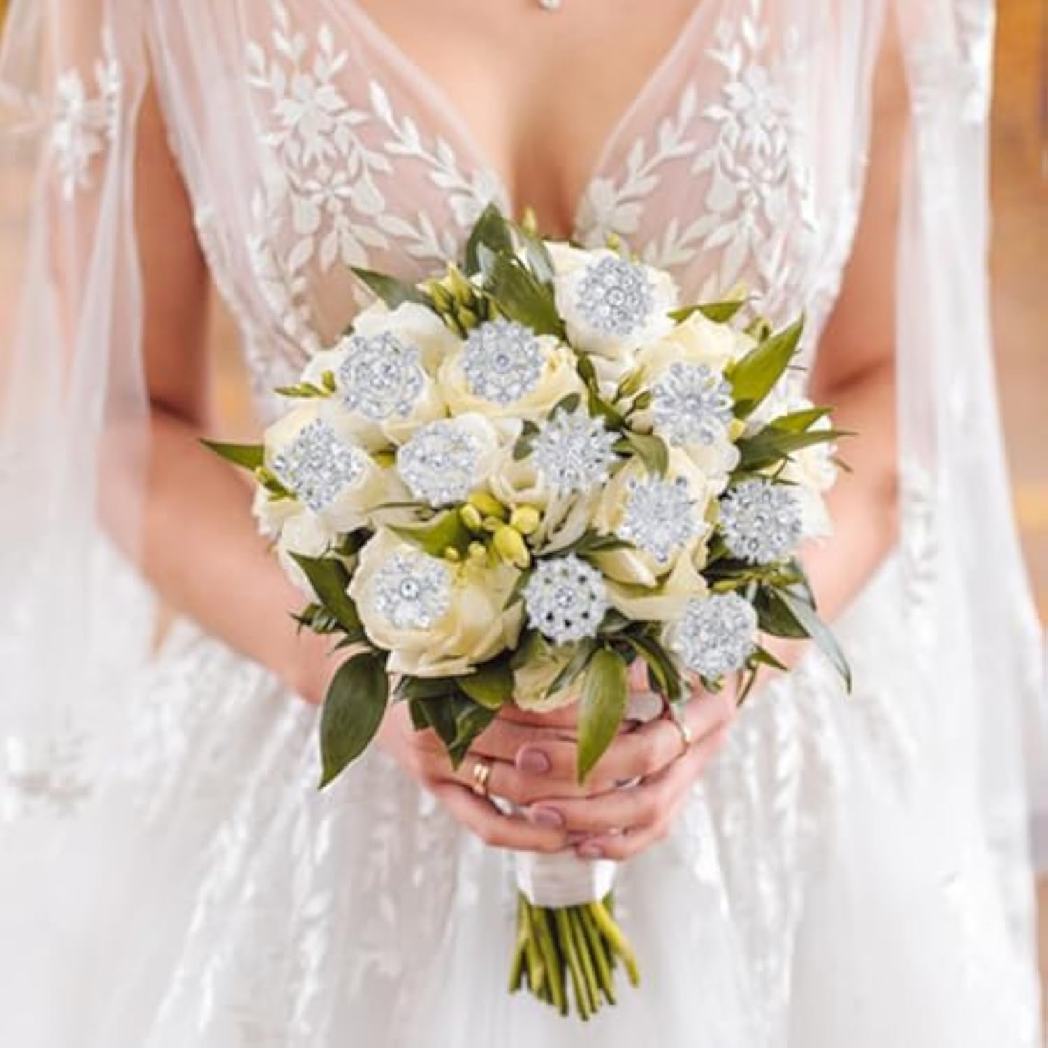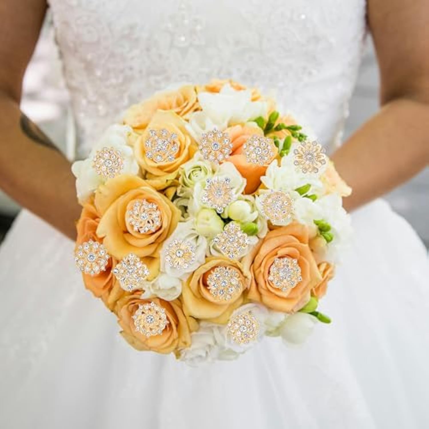- Sparkling crystal flower brooches is easy to put on and off, can be used for many craft decorations, such as DIY the brides bridesmaid wedding bouquet, dress, socks, hats, suits, coats, bags and so on.