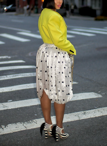 - Button Accents: Stylish black buttons not only serve as functional closures but also create a striking contrast against the yellow fabric, enhancing the blazer's visual appeal.