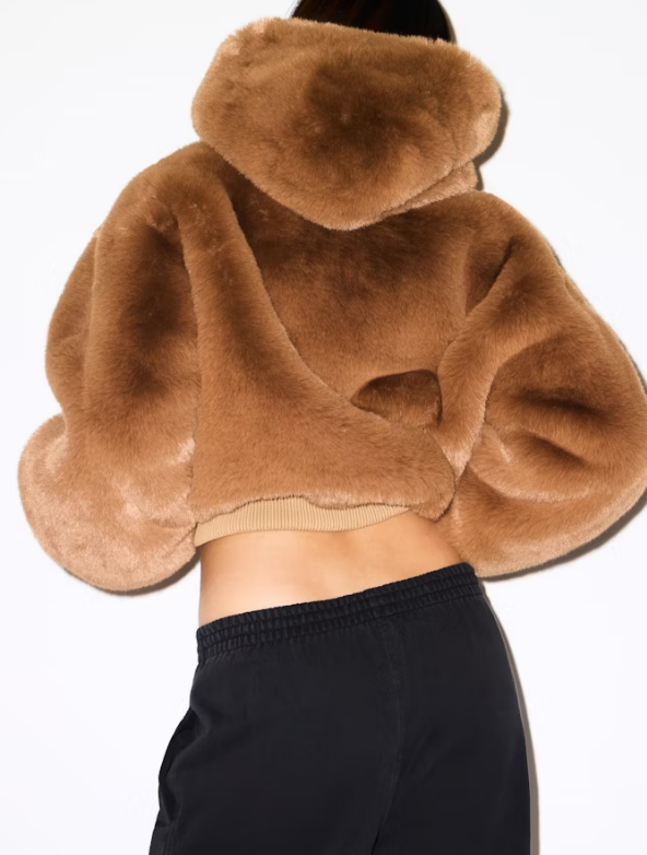 Luxury meets modern edge in this cropped fox fur jacket, a refined, elevated neutral that pairs seamlessly with your wardrobe. First and foremost, it features a zip-up hood, combining practical functionality with effortless allure.