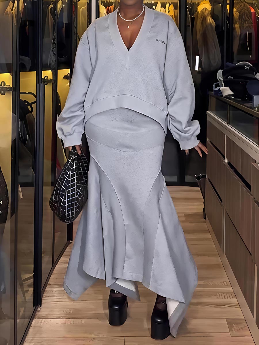 Fashion Patchwork V Neck Top & Mermaid Skirt