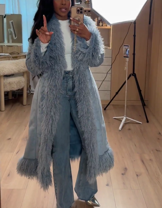 Bring a directional edge to your outerwear with the tan faux fur trim maxi coat. This tan maxi coat features a striking faux fur trim accenting the collar, cuffs, and hem. It's an essential for commanding attention during brisk city outings or elevated weekend moments. Pair with tailored shorts, sleek boots, and key accessories to own your day.