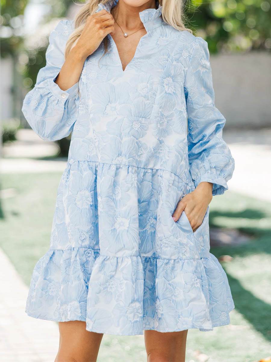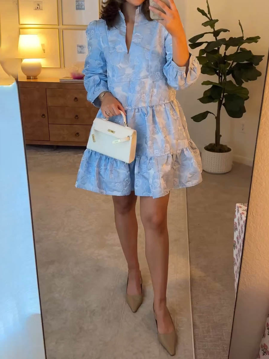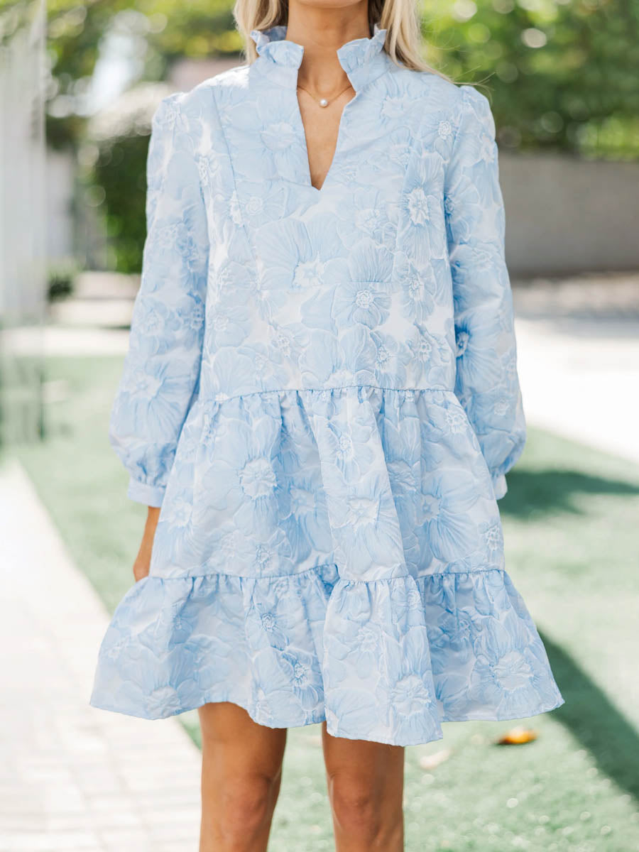 This dreamy brocade babydoll dress is a total showstopper! With its delicate blue floral print and flowy, babydoll fit, it’s the perfect pick for tea parties, special occasions, or just embracing your inner fairy-tale princess. The flowy silhouette makes it effortlessly elegant while keeping things fun and flirty. Simply add heels and a sparkly clutch, and voilà—instant romance!
