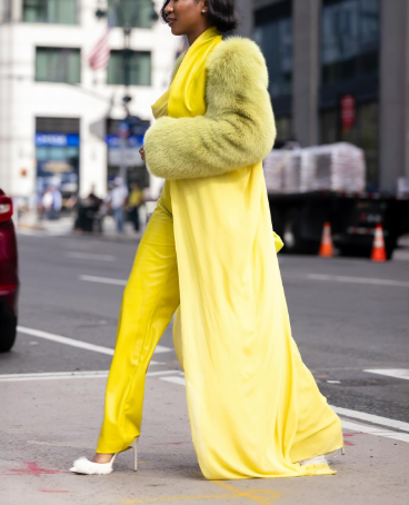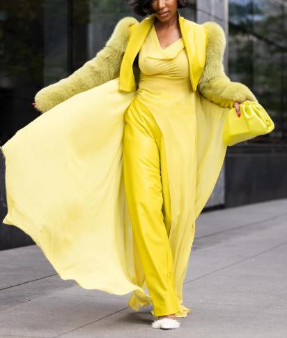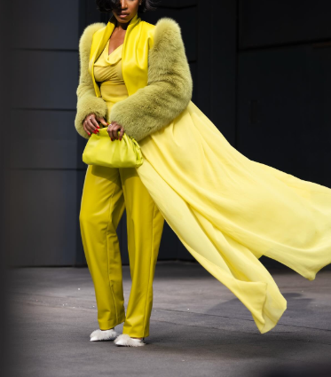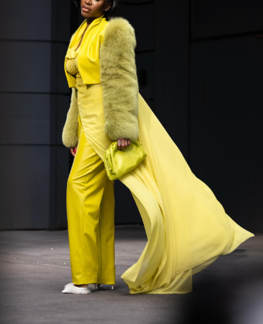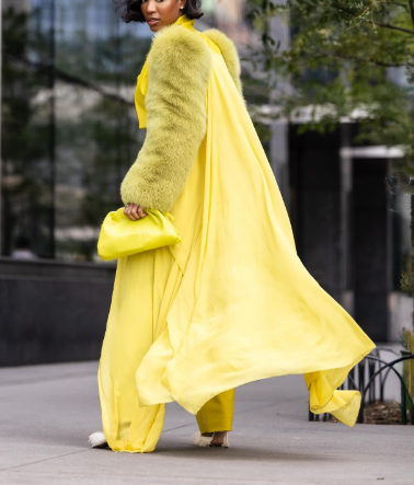 - Design: The cropped length accentuates your waistline, creating a flattering silhouette. The vibrant yellow hue, combined with the plush fur sleeves, strikes the perfect balance between sophistication and playfulness.