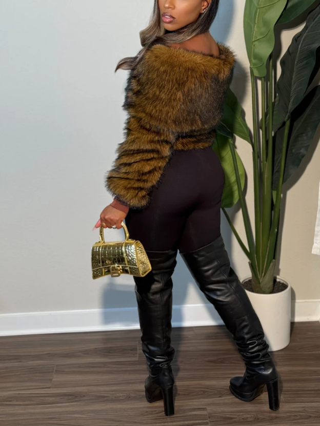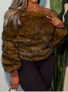 Off-shoulder Short Fuzzy Top
