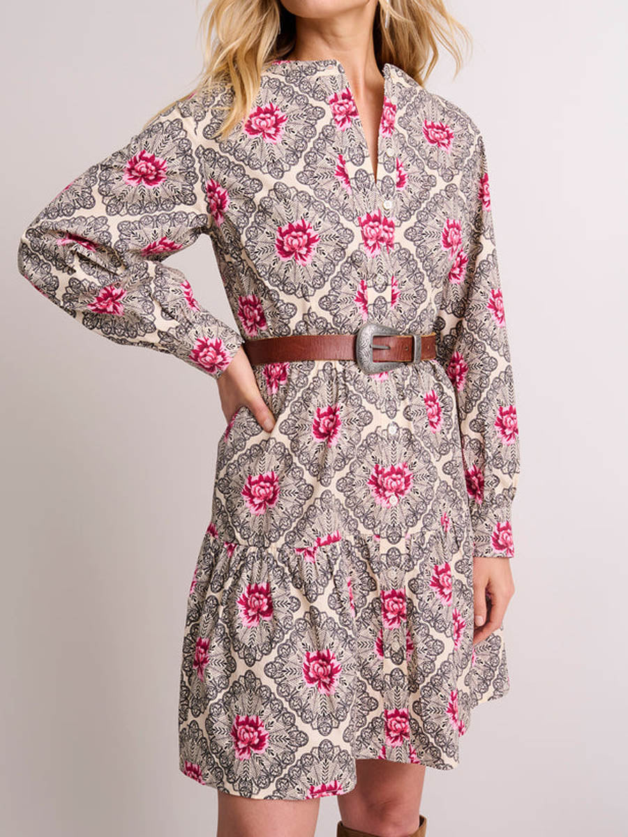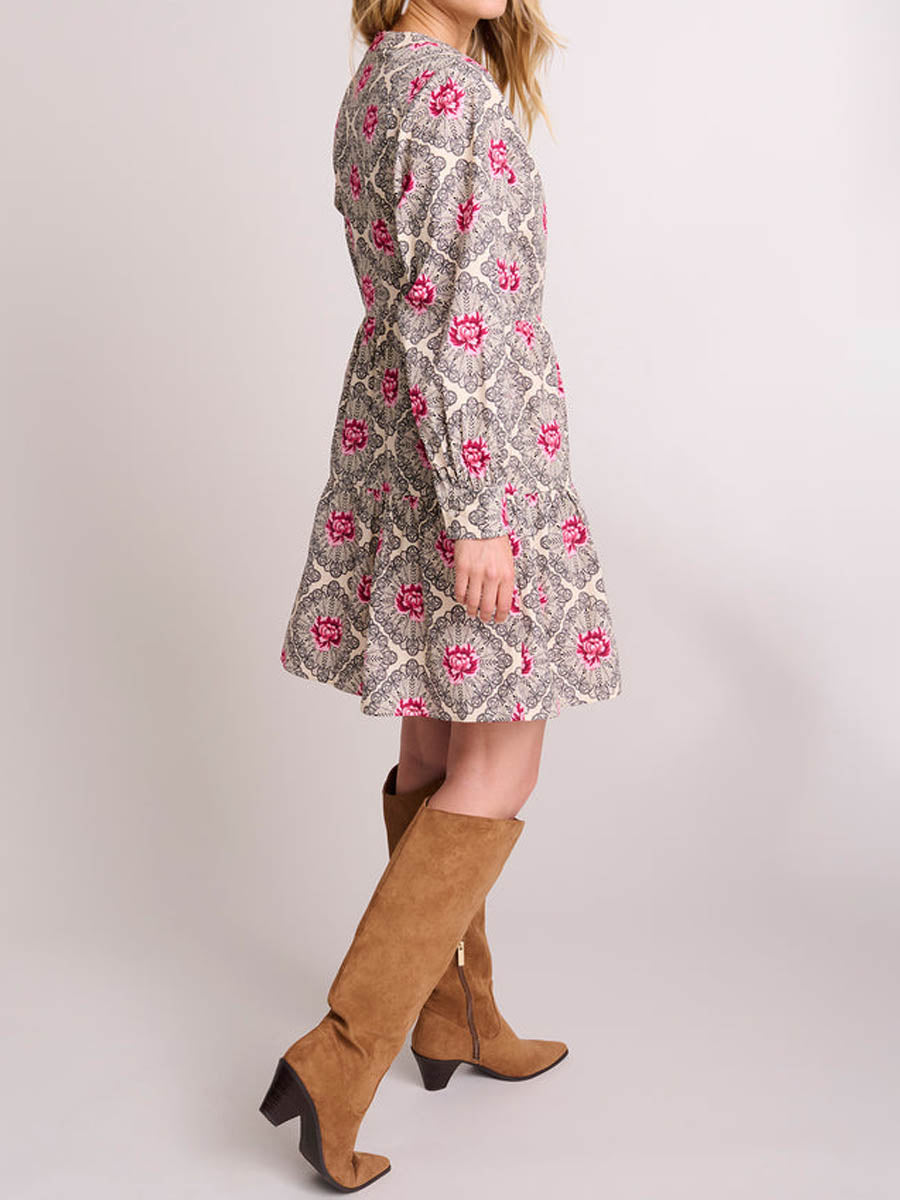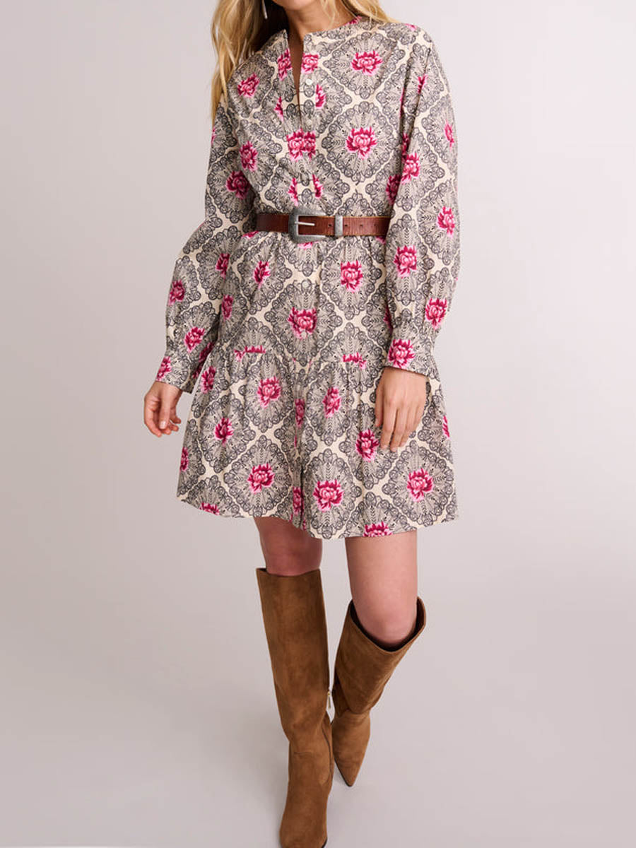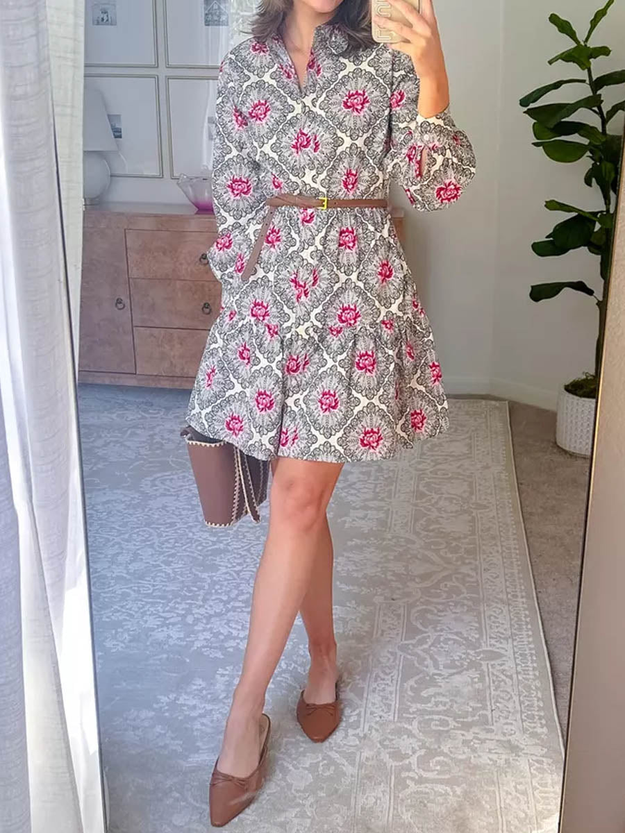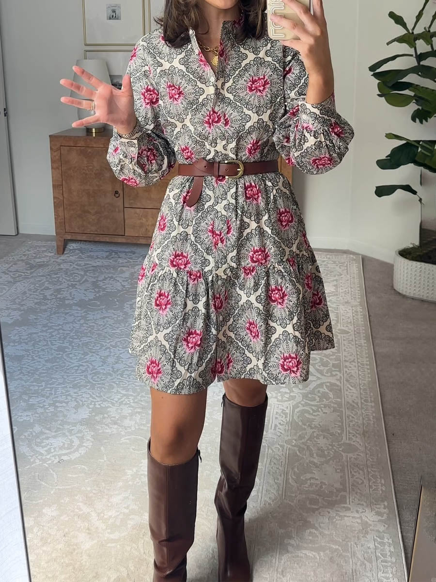 Printed Long Sleeve A-line Mini Dress