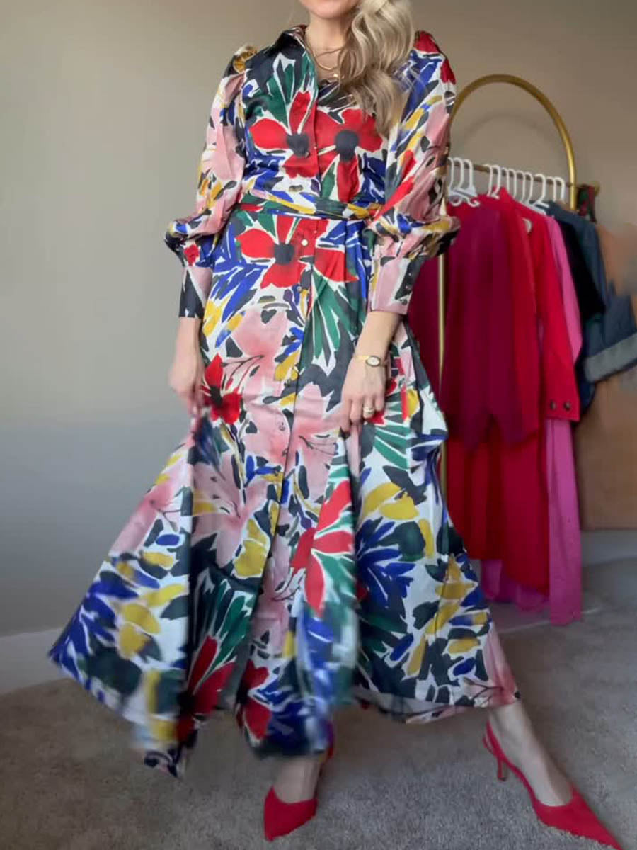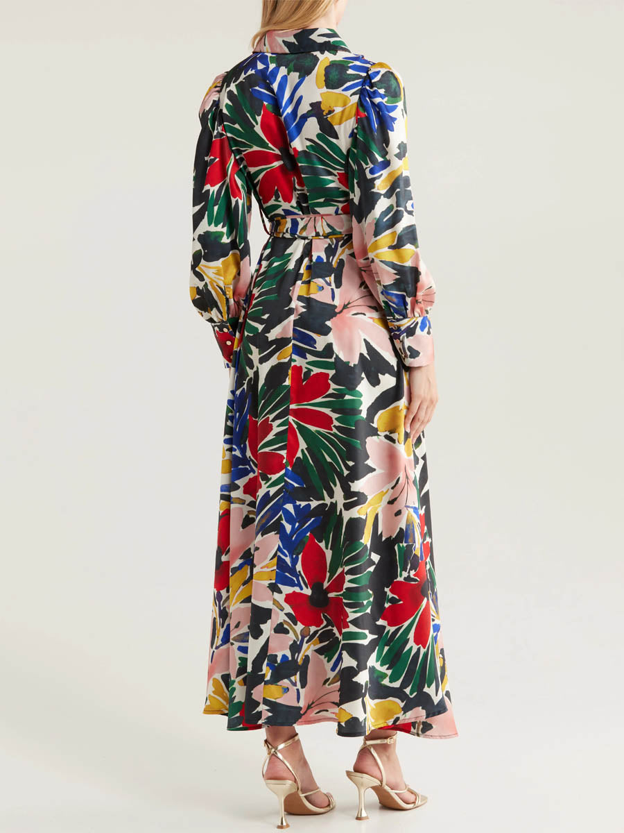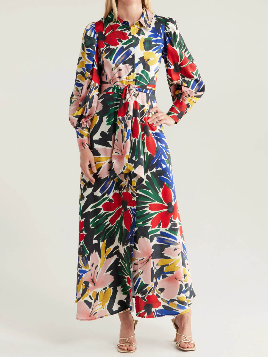 A bold print elevates a flowy A-line shirtdress fashioned with billowy bishop sleeves and a self-tie belt. 60 1/2" length Front button closure Spread collar Long sleeves with three-button cuffs Removable waist tie 100% polyester Machine wash, dry flat Imported Model stats: 5'10" height, 41" bust, 36" waist, 48" hip. Model is wearing size 2X.
