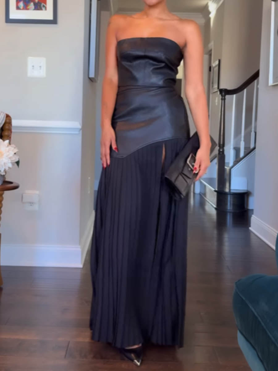 This Dress is a timeless addition to your occasion wardrobe, promising to be a go-to for many seasons to come. Crafted from satin, it features a draped bodice and a flowy pleated skirt that sways with each stride.