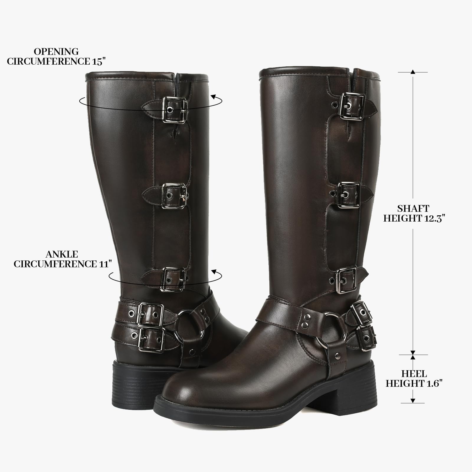【Wardrobe Essential】- With square toe, wide calf and buckle design, these women's boots are modern and tasteful fashion items that pair perfectly with your favorite dresses, skirts of any length, jeans and shorts.