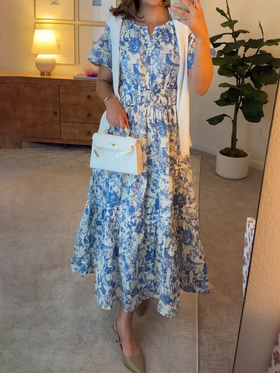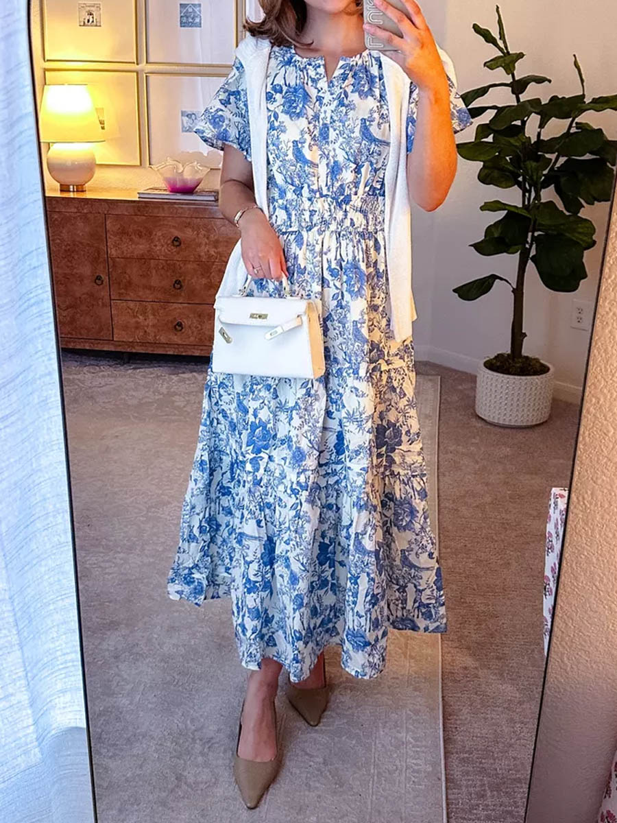 - Designed with a smocked waist, this beach flowy dress provides a comfortable and figure-flattering fit. The smocked waist not only accentuates your curves but also adds a stylish and trendy detail.