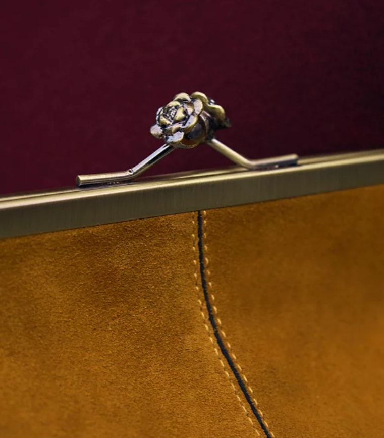 Carry your essentials in this crossbody bag showcasing vintage charm with modern sophistication. A structured frame silhouette and twist-lock closure provide both style and security. Delicate rosebud clasps add a romantic, nostalgic touch to the design. Multiple interior pockets keep your belongings organized during daily use.