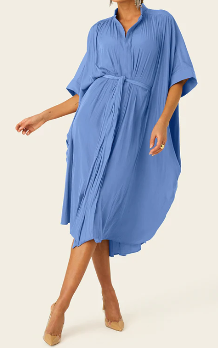 Our multiwear dresses softly taper to your shape - wear flowy or cinch with sash. Made in One-Size (fitting S-XL) & 3 lengths - choose length based on preferred hemline (Midi = Maxi for Petite heights).